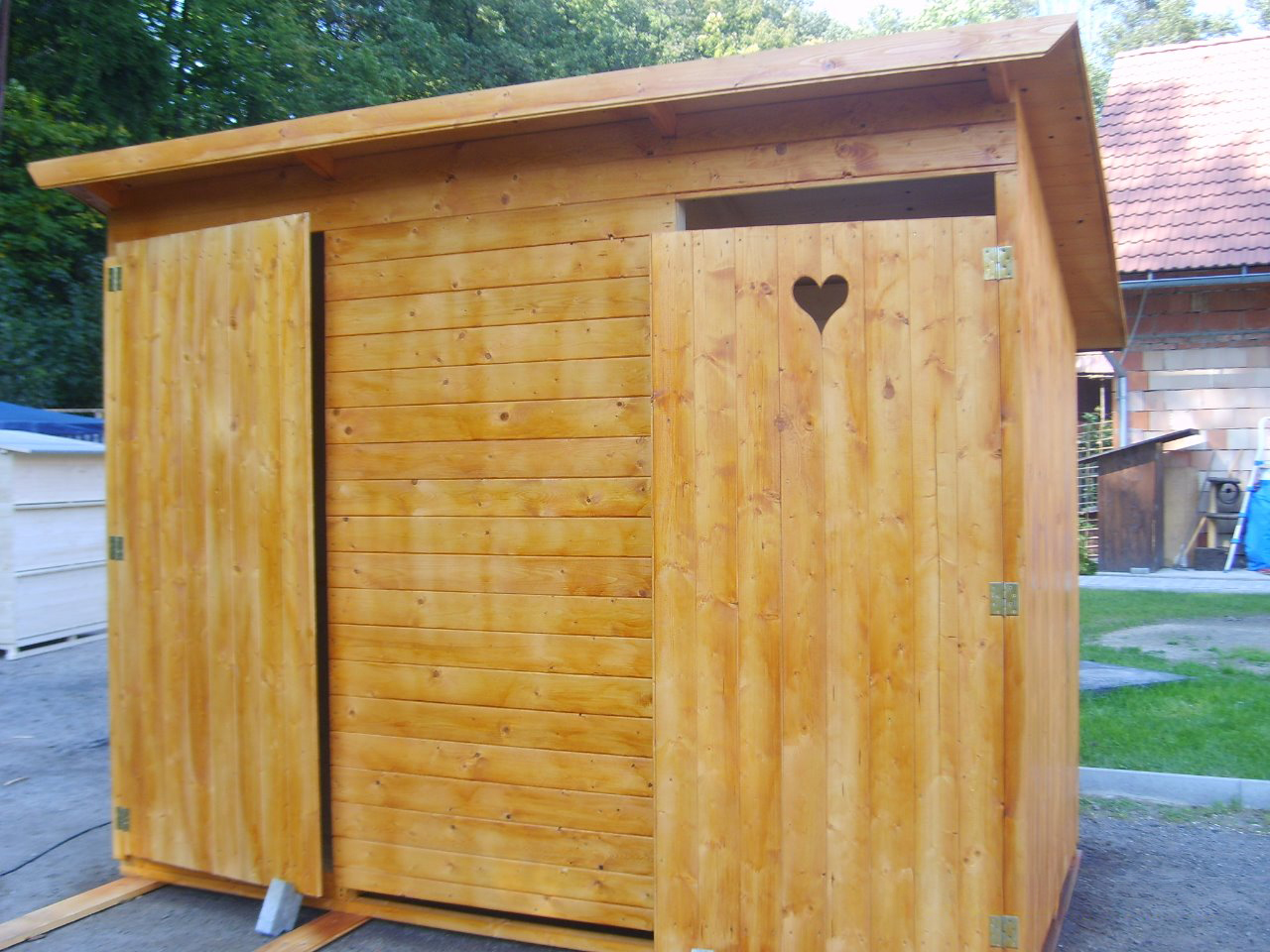 - Pevný a stabilní dřevěný domek vhodný pro zahrady, chaty, rekreační objekty, stavby i pozemky bez napojení na kanalizaci Praktické spojení úložného prostoru na nářadí a suchého WC v jednom objektu šetří místo a zvyšuje komfort používání