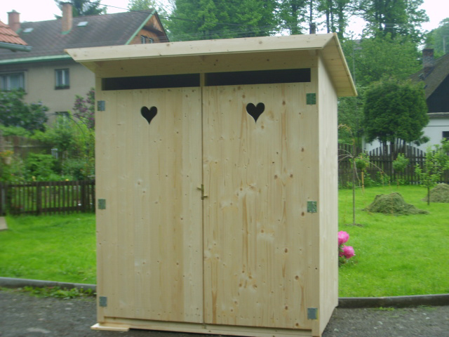 - Pevná a stabilní dvojitá kadibudka vhodná pro zahrady, chaty, rekreační objekty, stavby, kempy i místa bez napojení na kanalizaci
